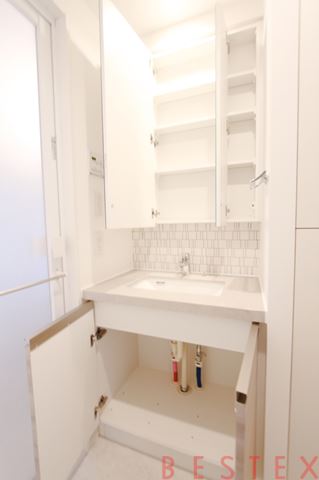 独立洗面台には収納機能も!