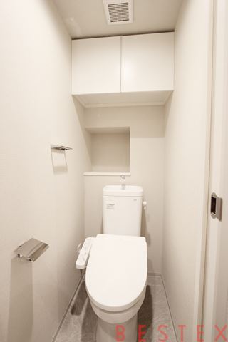 お手洗いはウォシュレット完備です♪収納棚もしっかり確保!