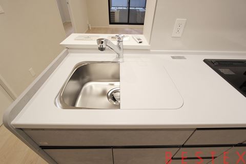 しっかりとした広さのあるシンク!調理スペースを確保するための延長台もあるのが便利!