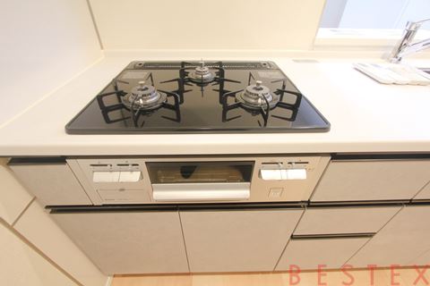 3口ガスコンロ・グリル付きのシステムキッチンです!