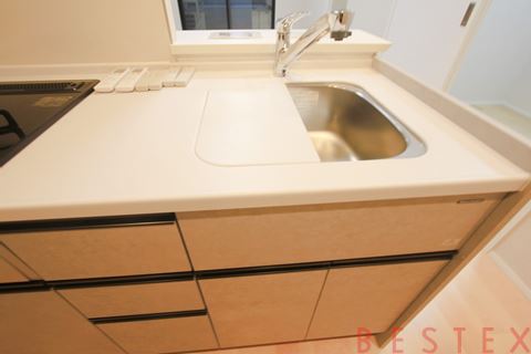 シンクは蓋を閉めれば調理スペースを広げられます。
