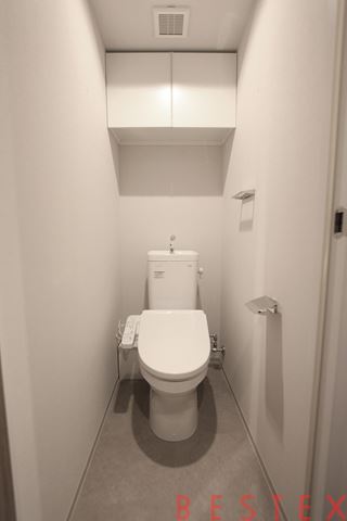お手洗いはウォシュレット完備です♪収納棚もしっかり確保!