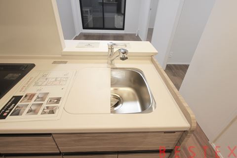 しっかりとした広さのあるシンク!調理スペースを確保するための延長台もあるのが便利!
