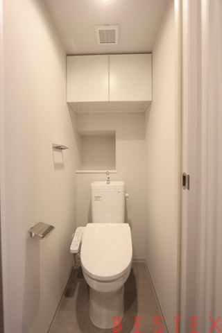 お手洗いはウォシュレット完備です♪収納棚もしっかり確保!