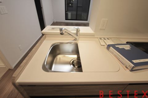 しっかりとした広さのあるシンク!調理スペースを確保するための延長台もあるのが便利!