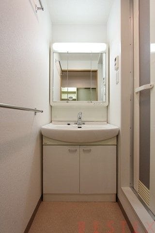 続いて脱衣所。人気の独立洗面台です!三面鏡の中も収納はバッチリ!脱衣所の嬉しいところは、お風呂から出たらすぐにキッチン、とならないで済むところですね♪
