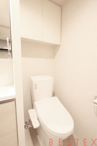 トイレはウォシュレット機能付き!収納棚も在るので掃除道具やトイレットペーパーも収納して、すっきりとした空間を保てます!