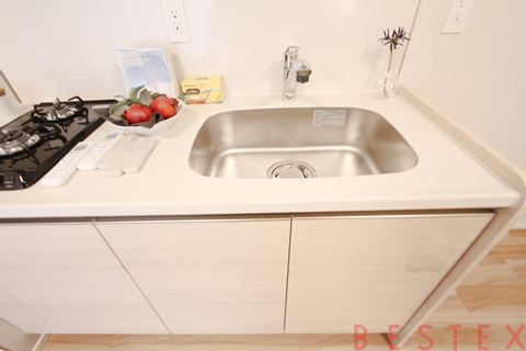 シンクとコンロの間に調理スぺースがあるのもポイントです。