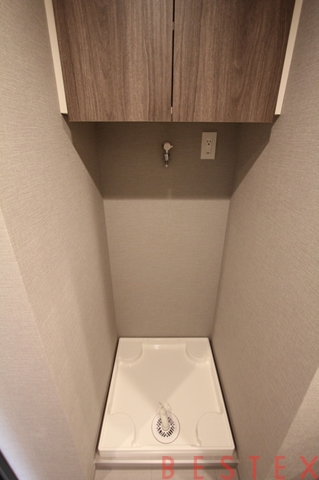 洗濯機スペースも十分な広さがあり、上部には収納がございます♪
