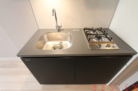 システムキッチンにはガス2口コンロがついており、自炊される方にもおすすめできます。