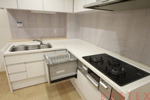 コンロはガスの3口コンロでビルドイン食洗機も完備!