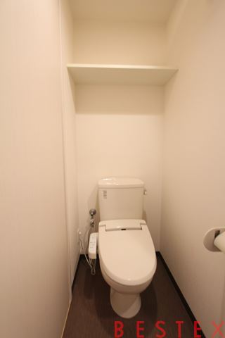 トイレはウォシュレット機能付き!収納棚も在るので掃除道具やトイレットペーパーも収納して、すっきりとした空間を保てます。!