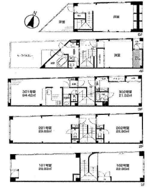 1階に2部屋、2階に2部屋の店舗事務所と3階にワンルーム1部屋と3LDKのオーナー住戸があるオーナーチェンジビルのご紹介です。