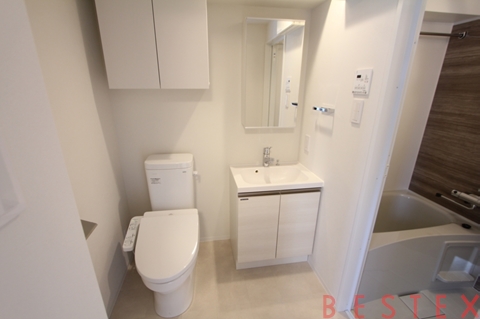 脱衣所にはトイレ、独立洗面台があり、スペースは広めです!
