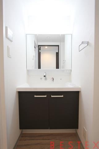 豪華な独立洗面台です!3面鏡と収納がついております♪