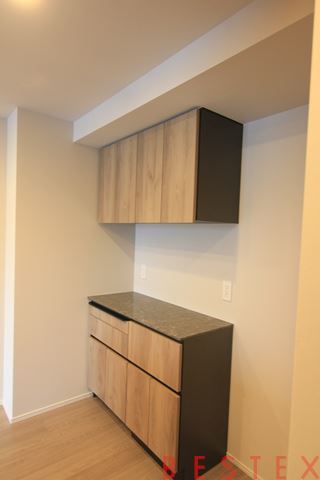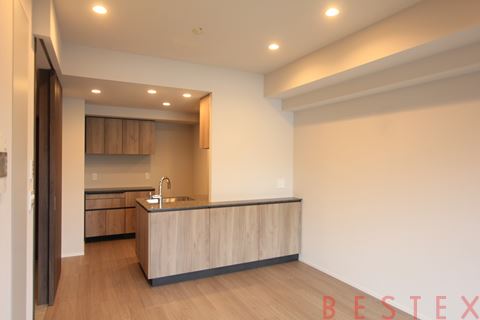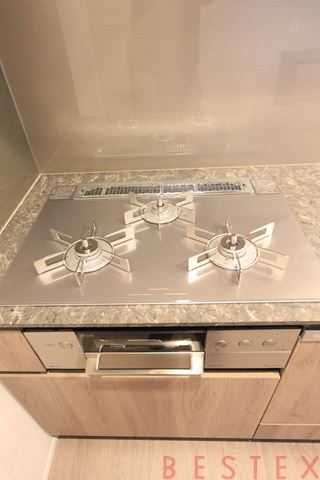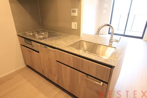 全体的にタイル調をいたるところに使用しており内装は清潔感があり、高級感がございます。大きな窓からは自然光がたっぷりと差し込み、開放感にあふれた明るいリビングが広がります。キッチンはカウンタータイプのシステムキッチンが採用されており、3口ガスコンロのグリル付き、ディスポーザーもついており快適に料理をして頂きます♪