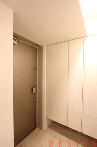 シンプルながら上質な玄関・高級感のあるタイル調の床を採用しております。