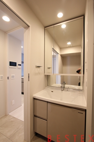 洗面所には独立洗面台がついております。シンクも大きめで収納容量も多いのでご家族での使用も安心です。