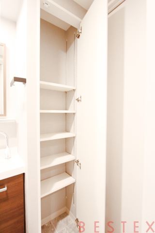 洗面台横にも収納があります!