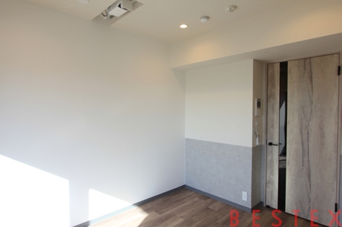 室内は26㎡の1Kタイプで、無駄のない間取り設計により、実際の帖数以上の広さと開放感を感じられる空間です。最大の特長は、全室にプロジェクターとスピーカーを備えたシアタールーム仕様となっている点。壁一面に映し出される大画面で、映画鑑賞やスポーツ観戦、ライブ映像まで臨場感たっぷりに楽しめます。ダウンライトが落ち着いた雰囲気を演出し、オン・オフの切り替えがしやすい居心地の良い室内です。キッチンは2口ガスコンロ付きで、作業スペースも確保されており自炊派の方にも安心。独立洗面台、浴室乾燥機、温水洗浄便座など水回り設備も充実しています。クローゼットも備わっており、衣類や生活用品をすっきり収納できます。さらにインターネット無料のため、入居当日から快適なネット環境で新生活をスタートできる点も魅力です。