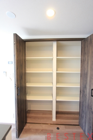 キッチン横には大きな収納がございます。パントリーとしても共同収納としても活躍してくれそうです♪