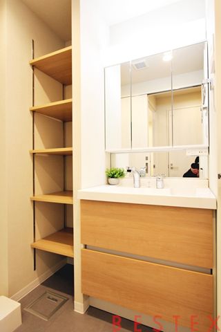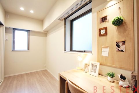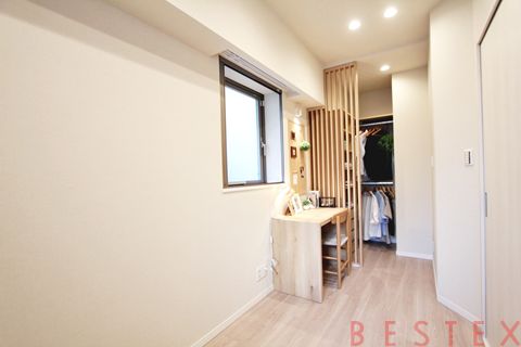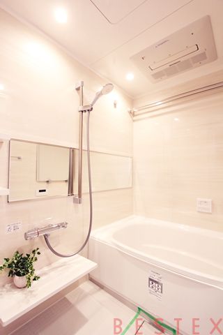 約5.6帖のベッドルームには収納力に優れたオープンクローゼットが設けられており、居住スペースを広く使うことができます。水回りも一新され、シャワードレッサー付きの独立洗面台や、サイドに便利な収納棚を備えた洗濯機置き場、追い炊き機能と浴室乾燥機を完備したバスルーム、さらに温水洗浄暖房便座付きのトイレなど、日々の生活の質を高める設備が整っています。