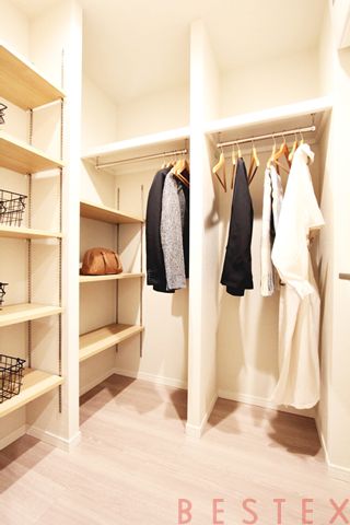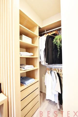 玄関には2人分でも十分に収まる容量のシューズクローゼットを備え、人感センサー付きのライトが帰宅時に優しく足元を照らします。廊下部分には広々としたマルチウォークインクローゼットが設置されており、日用品や季節物の荷物もすっきりと整理することが可能です。
