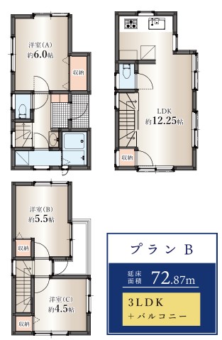延べ床面積72.87㎡の3LDKのプランのご提案です。
