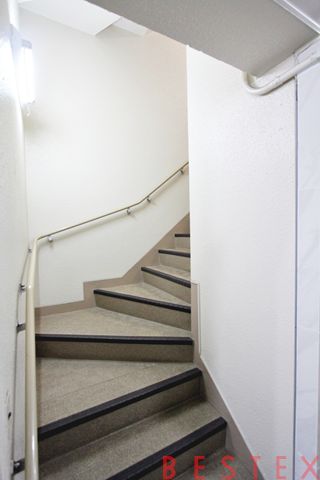 共用部分は全39戸の自主管理体制となっており、エントランスは大通りの喧騒から一歩入った裏側に配置され、プライバシーに配慮されています。建物内は天候に左右されず、防犯面でも安心感のある内廊下設計を採用。エレベーターには防犯カメラが設置されており、日々の昇降も安心です。また、敷地内にゴミ置き場を完備しているため、忙しい朝のゴミ出しもスムーズに行えます。