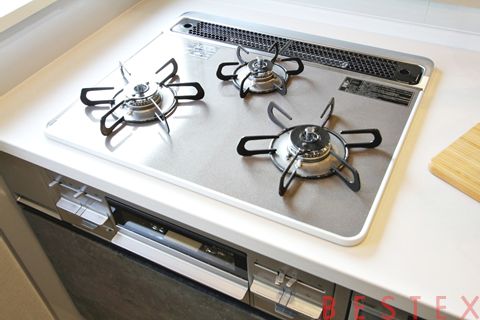 3口ガスコンロ・グリル搭載。
