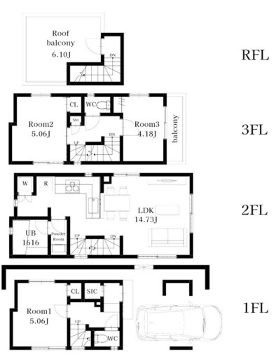 参考プランは駐車スペース付きの3LDKの間取りです。