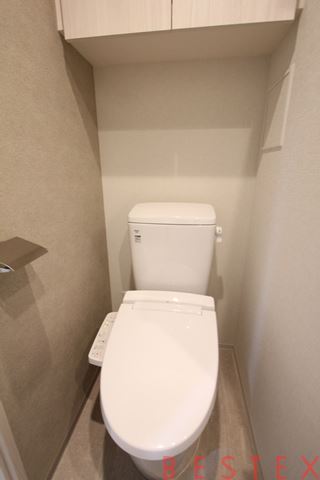 トイレは温水洗浄便座になっております。こちらも収納スペースたっぷり!