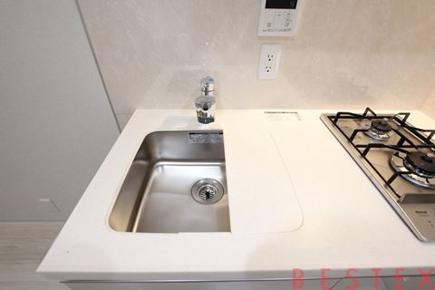 シンプルなシンク!調理台も延ばせるので料理もしやすい。