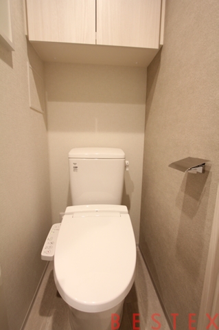 トイレはもちろんウォシュレット付きです!上部には棚もある為、トイレ用品の収納は心配いらなそうです。