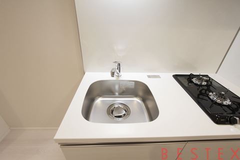 また、キッチンは2口コンロのシステムキッチンを採用しており、自炊派の方にも嬉しい仕様。収納スペースもしっかり確保されているため、お部屋をすっきりと保つことができます。