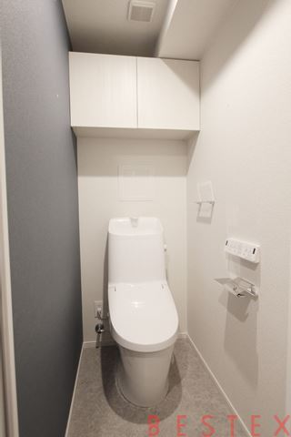ウォシュレット機能付きのトイレが付いております。トイレ内で手を洗えるので部屋を清潔に保てます。収納などもありますので清潔感を保てます。トイレットペーパーなどはここに隠しましょう。