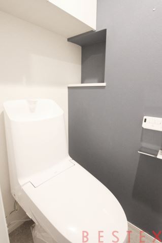 ウォシュレット機能付きのトイレが付いております。収納などもありますので、トイレットペーパーなどはここに隠しましょう。