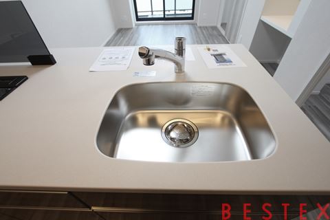 大きなシンクです。延長台がデフォルトでついておりますので、少し調理スペースが狭いかと思った方も安心してください。