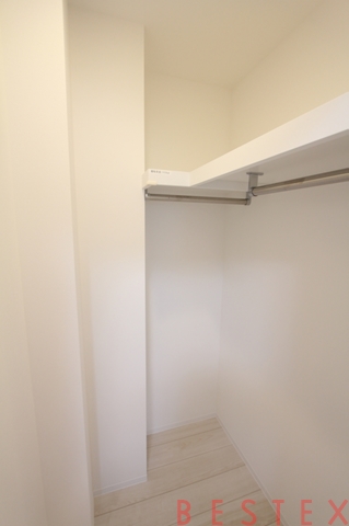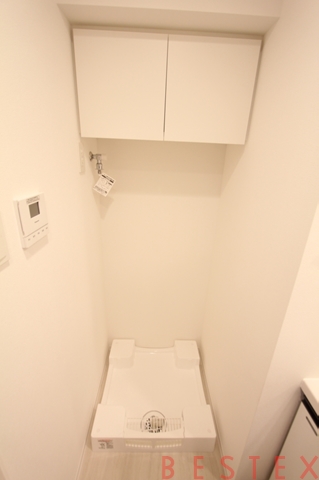脱衣所に洗濯機スペースがある人気の間取りになります。上部には収納もございます。