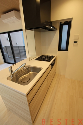 人気のカウンターキッチンを採用!明るい色の木目のシステムキッチンで清潔感がございます。