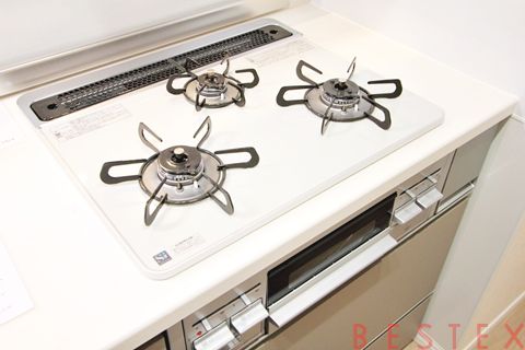 3口ガスコンロ・グリル搭載。