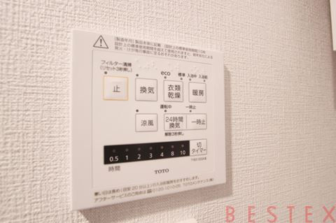 浴室乾燥・暖房・涼風・換気機能付きのお風呂で雨天でも洗濯物を乾かす事ができます。
