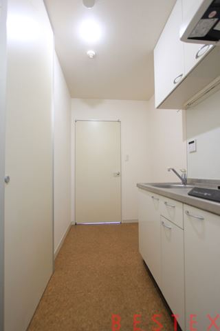 廊下は右手にキッチン、左手にはパウダールームがあります。