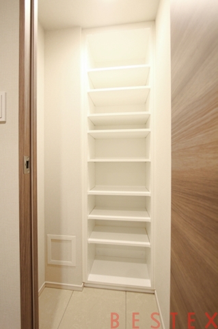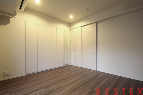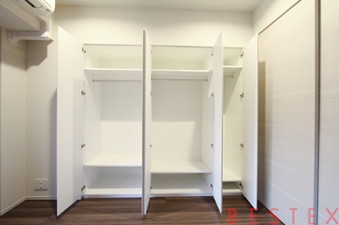 こちらのお部屋には壁一面の収納。