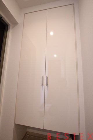上部にはトイレ同様棚がついているので、普段洗濯で使うものなどを片づけておけます。