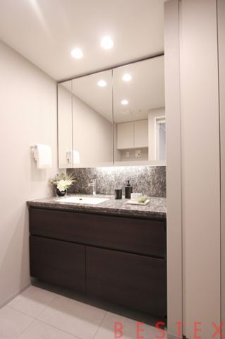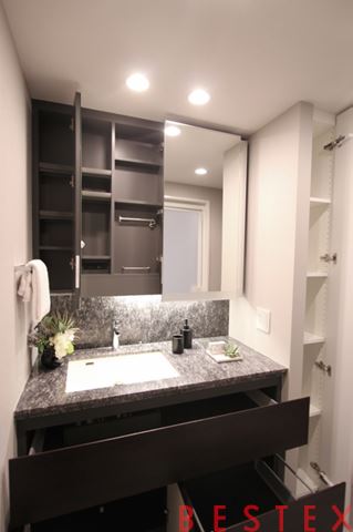洗面台も大きめで収納スペースもしっかりと確保されております。