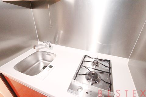 キッチンは2口ガスコンロ完備、調理スペースも取られております♪