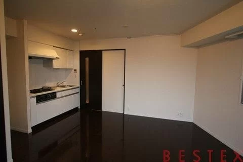 キッチンは壁を向いてるので、余分なスペースは取りません♪リビング部分には床暖房を完備!さすがの賃料なだけありますね。
