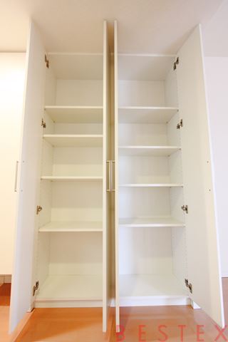 シューズボックス横には収納がございます!奥行きもあるので使い勝手が良さそうですね!