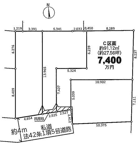 今回ご紹介の売地は全4区画のうちC区画になります。